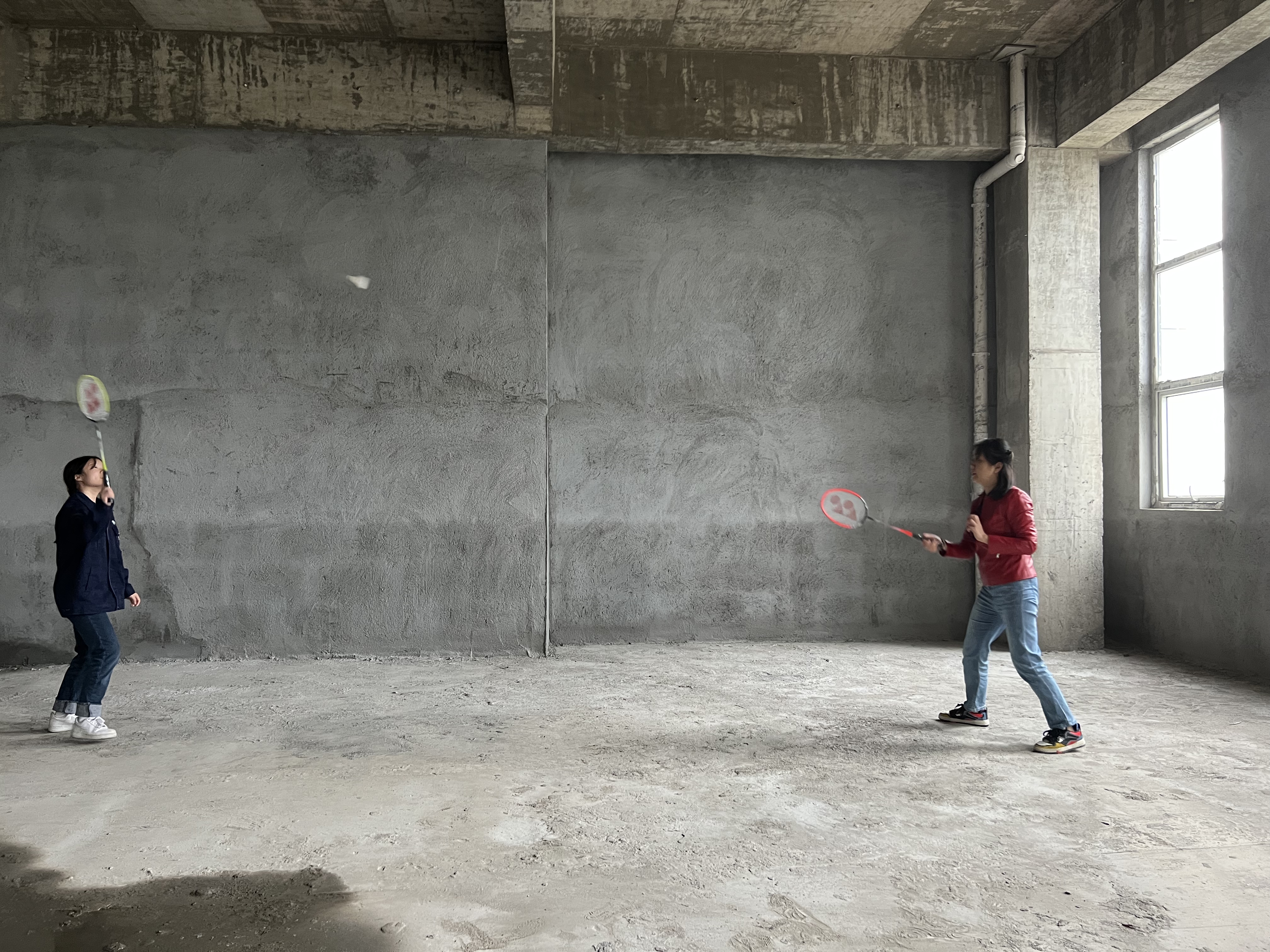 飯后,美均員工帶著兩位老師體驗了不一樣的企業(yè)文化——體育鍛煉。